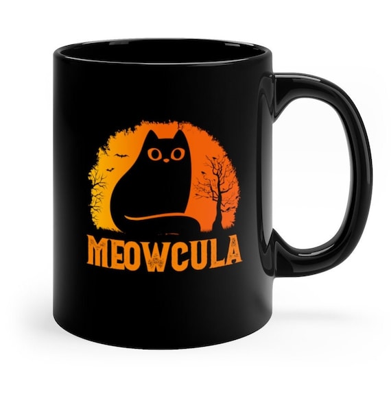 Start the spooky season off right with a delicious beverage from this perfectly sized 11 oz MEOWCULA halloween mug. It’s microwave and dishwasher safe and made of black, durable ceramic in 11-ounce sizes. The high-quality design makes this black ceramic mug the perfect gift for your true coffee, tea, or hot chocolate lover.