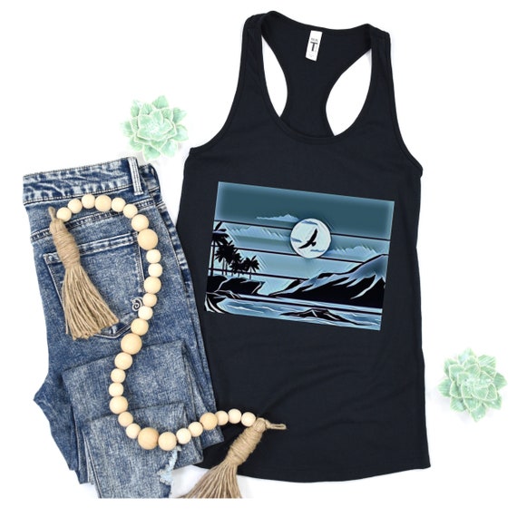 Womens Mountain Tank Top Retro Faded Art Graphic Tees Summer Tanks Womens Clothing Retro Hiking Shirt for Women Nature Lover Gift by 3DCandleCreations