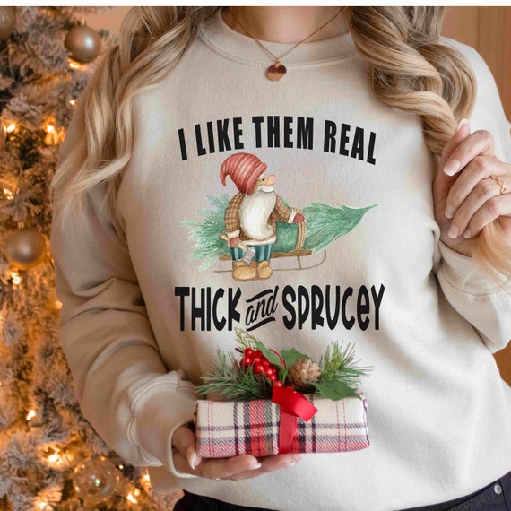 Thick and Sprucey Sweatshirt Funny Gnome Sweatshirt Scandinavian Gnome Danish Hygge Swedish Tomtes Womens Christmas Tree Sweatshirt