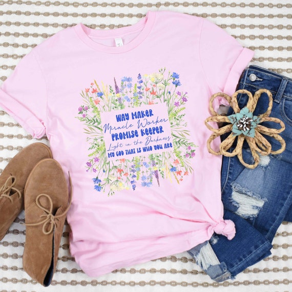 Wildflower Christian Shirt Inspirational Tee for Women Botanical Waymaker Religious T Shirt Miracle Worker Faith Shirts Gift for Her Flower by 3DCandleCreations