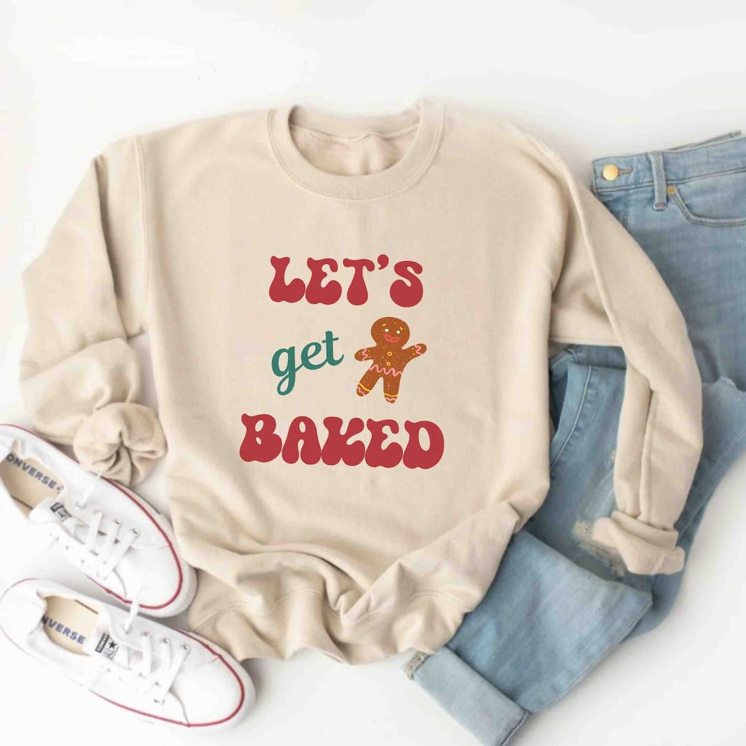 Lets get Baked Funny Christmas Sweatshirt Christmas Cookies Baking Baker Pullover Shirts Drinking Sweatshirt Crewneck Trees Xmas Humor