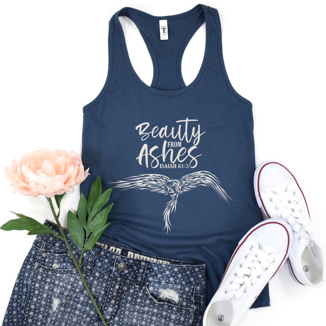 Beauty from Ashes Tank Top Phoenix Rising Boho Tanks Faith Shirts Hiking Shirt Outdoors Tanks Hike Shirt Summer Tee Shirts for Women