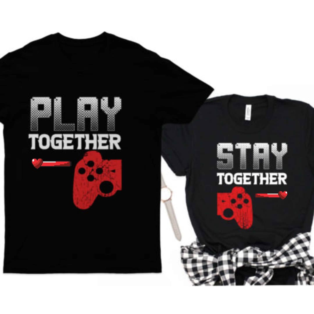 Couples Gaming Shirt Play Together Stay Together Video Game Shirts Matching Couple Tee His and Hers by 3DCandleCreations
