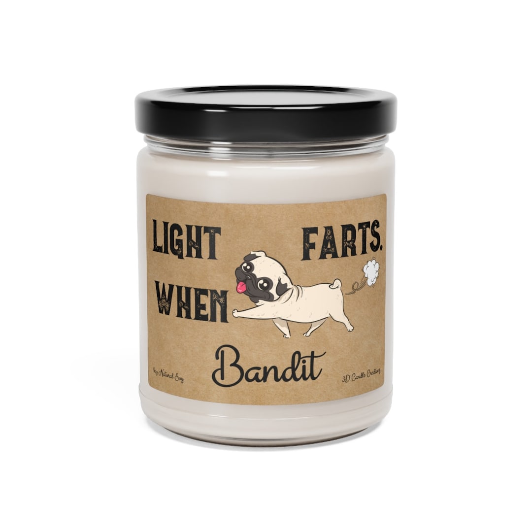 Pug Candle Personalized Gift Light When Name Farts Pug Dog Funny Gift for Dog Lover Dog Deodorant Odor Eliminator Animal Scented Candle by 3DCandleCreations