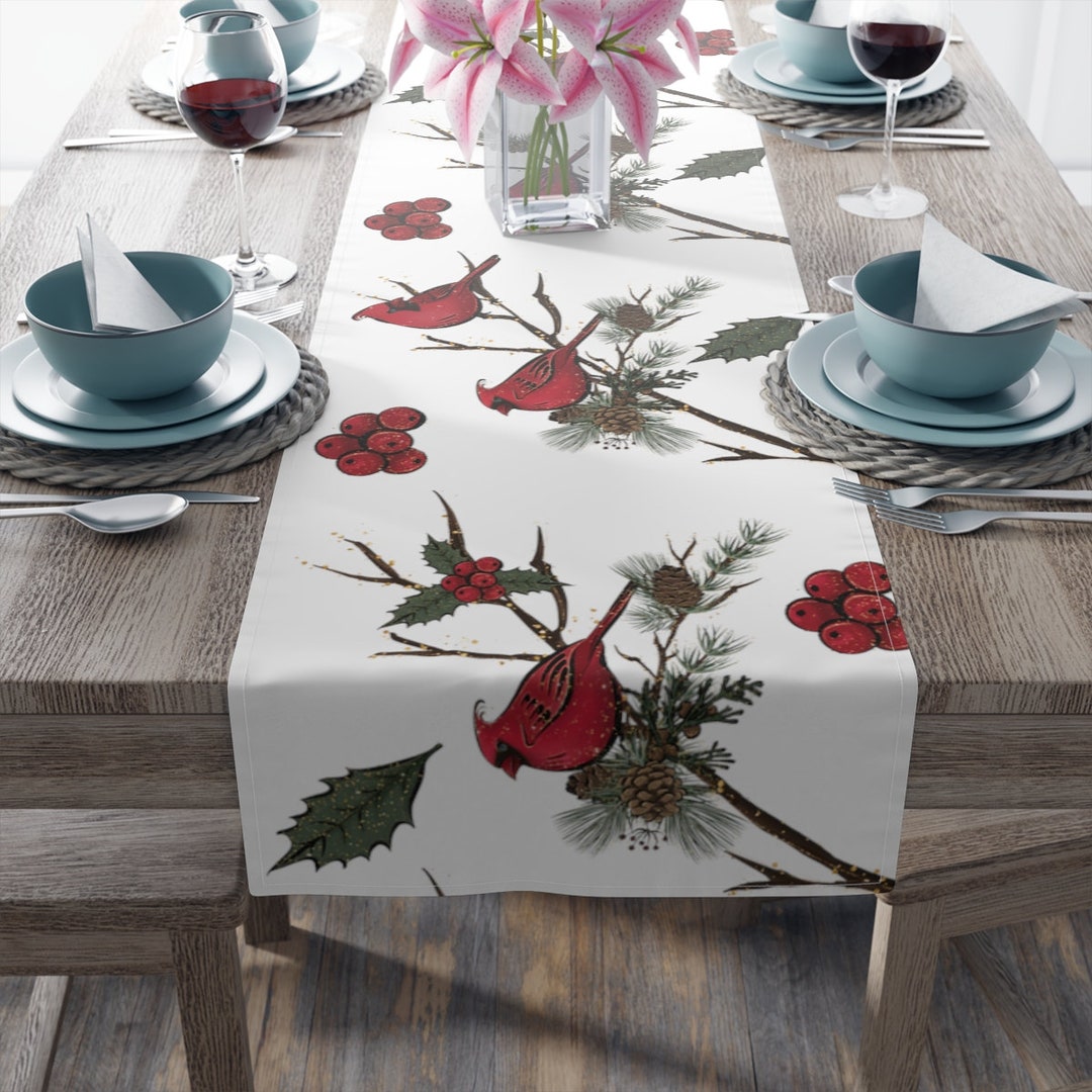 Cardinal Table Runner Cardinals on Trees Holiday Kitchen Home Decor Farmhouse Tablecloth Fabric Housewarming Gift Christmas Table Decor