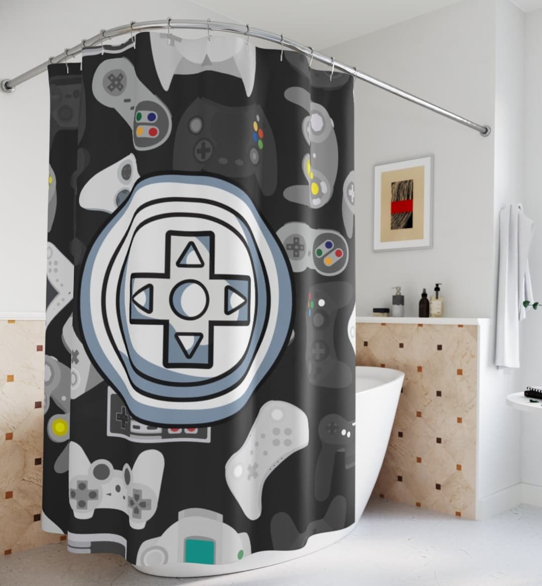 Video Game Shower Curtain Kids Bathroom Curtains Gamer Gift Man Cave Boys Bath Room Decor Teen Childrens Game Controller Restroom Art Gaming by 3DCandleCreations