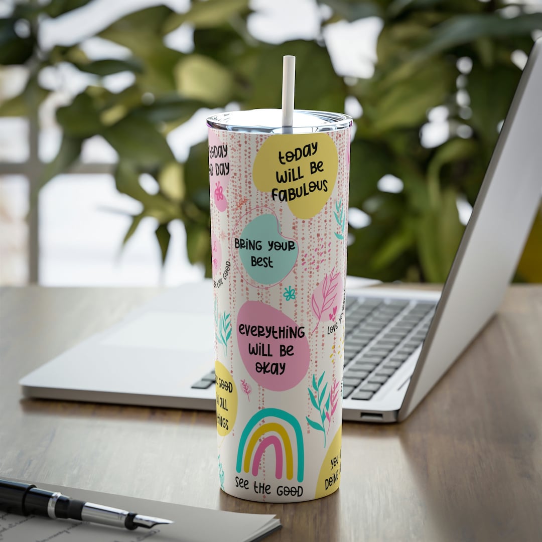 Mental Health Affirmation Tumbler with Straw Gift For Her Travel Cup Skinny Insulated 20 oz Summer Gifts Mom Positivity Inspirational by 3DCandleCreations