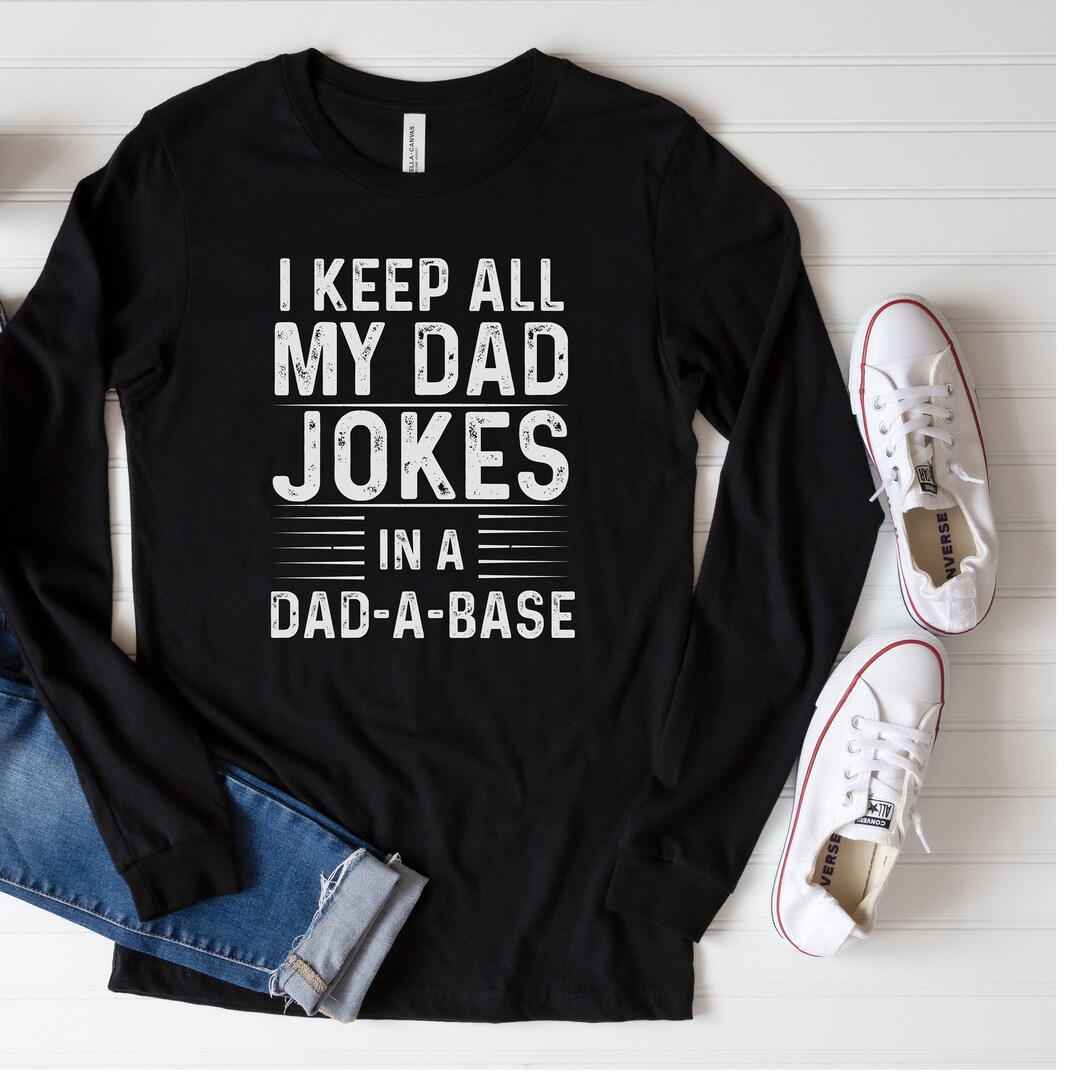 Dad Shirts I Keep All My Dad Jokes In A Dad-a-base Long Sleeve Dad Shirts Daddy Funny Fathers Day Best Gift for Dads Gift for Him Husband by 3DCandleCreations