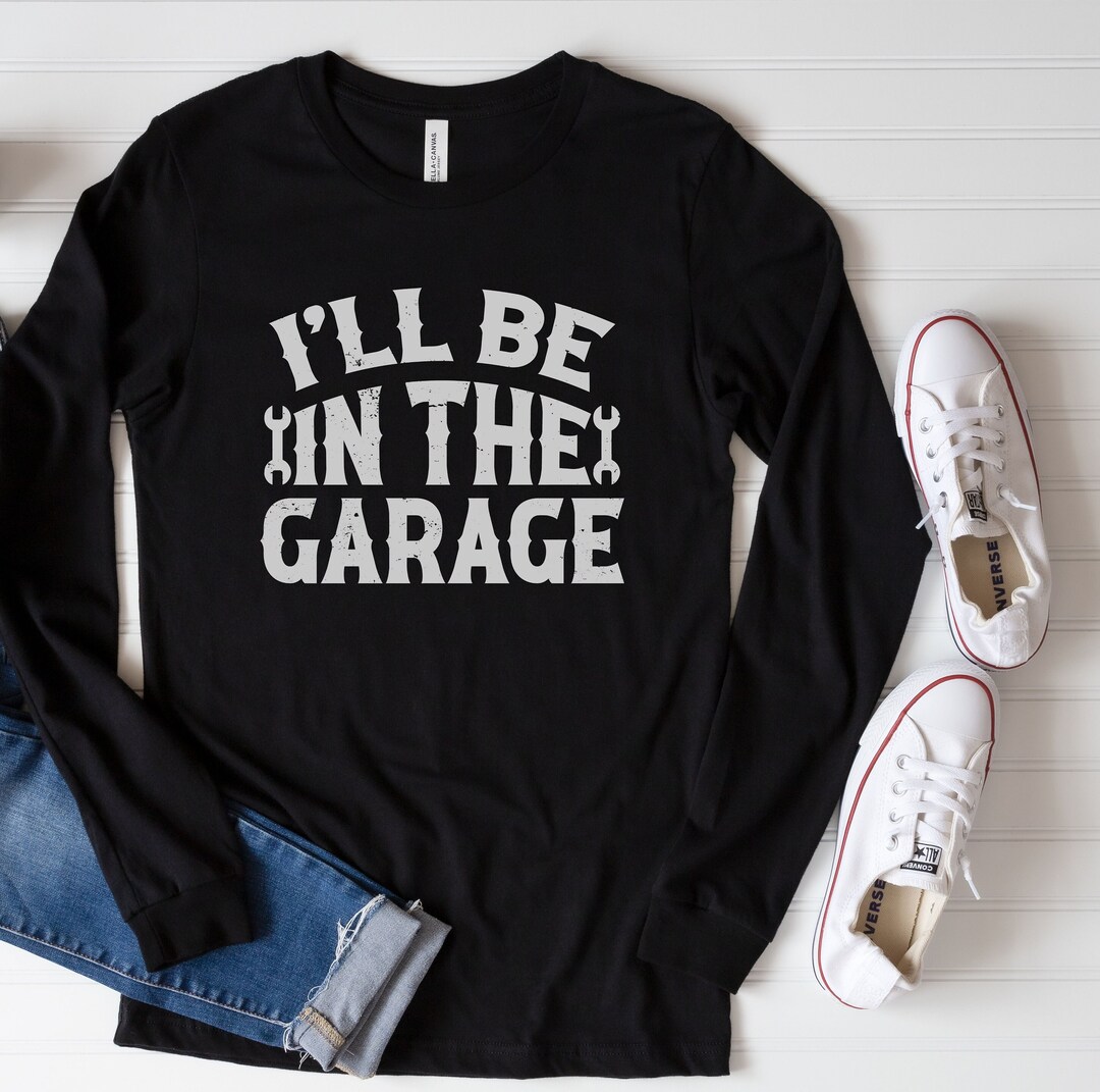 "I'll Be In The Garage" Shirt is the ultimate pick for any mechanic, handyman, or DIY enthusiast in your life. Now available in a tee, long sleeve, and sweatshirt, this funny, relatable apparel will not only keep them comfy but will also give them a distinctive style.