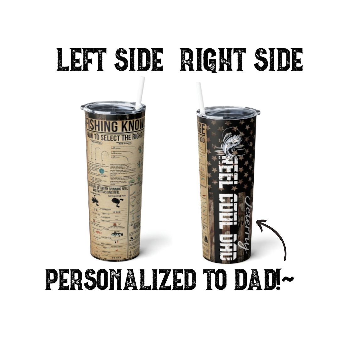This "Reel Cool Dad" fishing tumbler is the perfect gift for the dad who loves fishing! The tumbler features a fun and playful design that incorporates fishing knowledge and humor, making it a unique and special gift that he'll love.