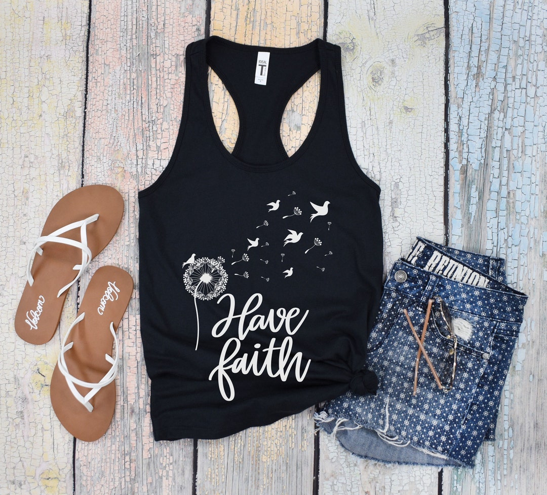 Have Faith Tank Top for Women Christian Gift for Mom Mothers Day Tanks for Her Summer Tee Racerback Shirts Dandelion & Doves Positivity Gift