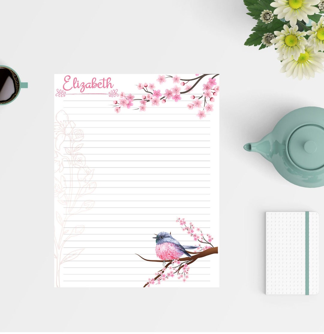 Personalized PRINTABLE Stationery Custom Name Stationery Bird Lover Gift Print at Home Digital Download PNG Gift for Her Lined Journal Paper by 3DCandleCreations
