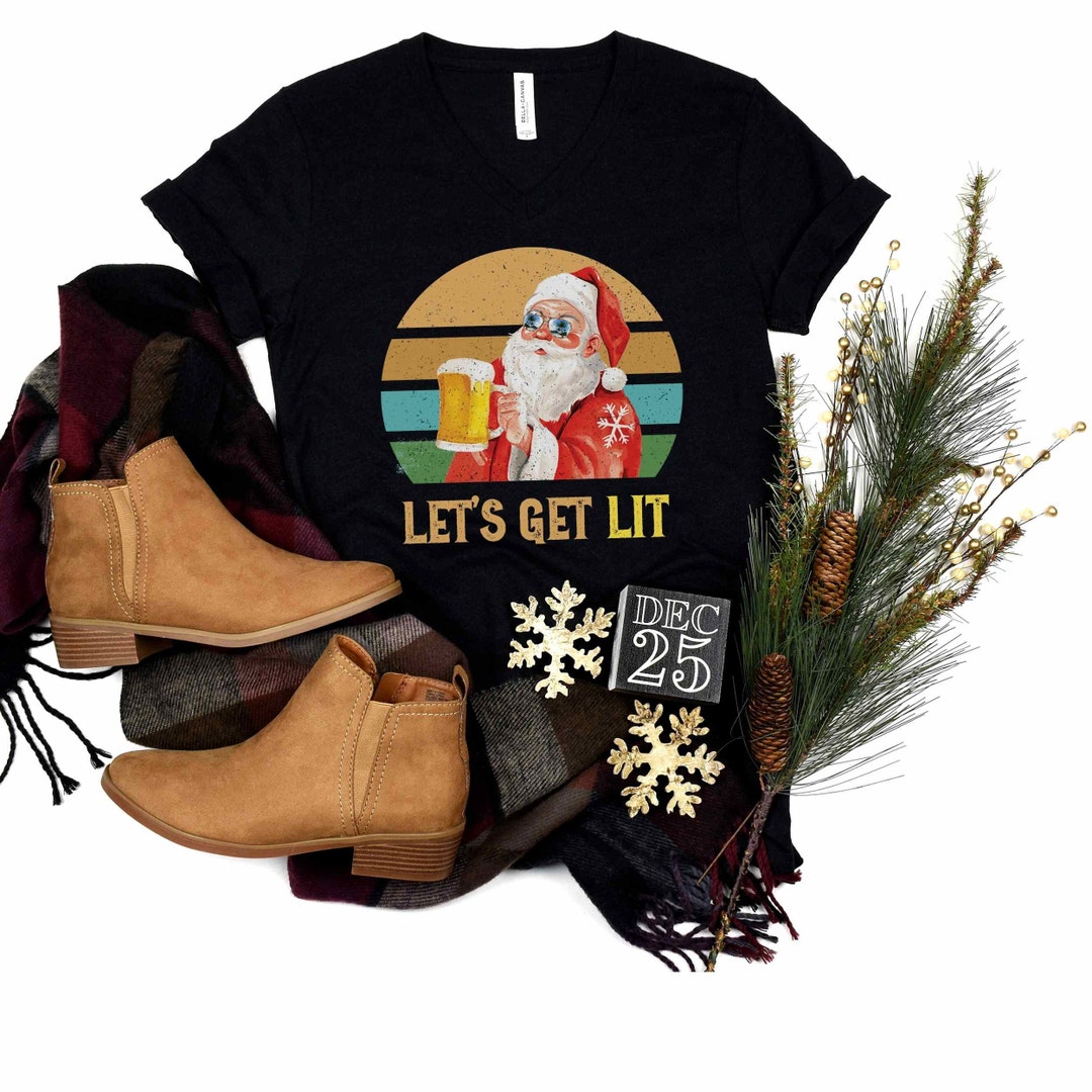 Retro Drinking Santa Shirt Retro Santa Christmas Shirts Vintage Santa Graphic Tee Crewneck Funny Christmas Xmas Holiday Lets Get Lit Gift by 3DCandleCreations