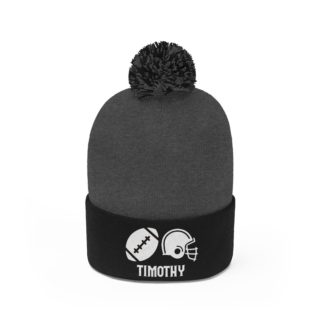 Personalized Name Football Pom Pom Beanie Football Winter Hat Kids Boys Gifts Embroidered Football Lover Birthday Gifts One Size by 3DCandleCreations