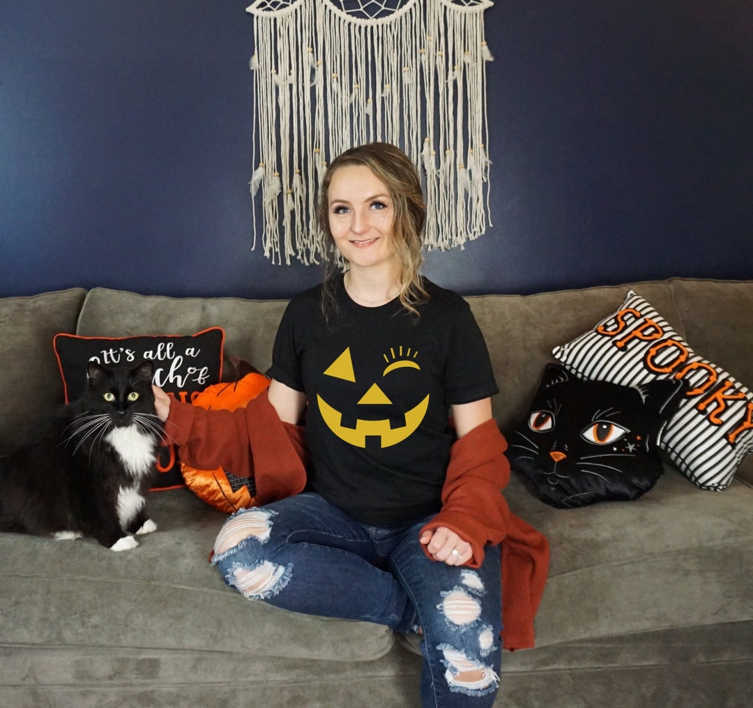 Pumpkin Face Halloween Shirt Halloween Shirt Fall Teacher Tee Women Fall Graphic Tee Shirt Jackolantern Spooky Season Night Gift for Her by 3DCandleCreations
