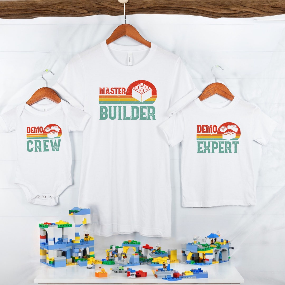 Introducing the perfect shirt for all the block building enthusiasts out there! This shirt is suitable for both children and adults and is perfect for those who love to build and create with blocks. Featuring a bold and colorful vintage design, this shirt is sure to be a hit among fans of all ages. Choose between styles: "Master Builder" or "Demo Expert." Demo Crew, Choose your own saying, and more!