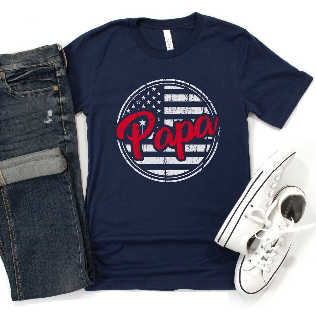 Papa Flag Shirt Red White Blue Papas Shirt Distressed Flags Gift for Him Dad Gifts Fathers Day Gifts to Grandpa Pop Pop Grandpas USA Retro