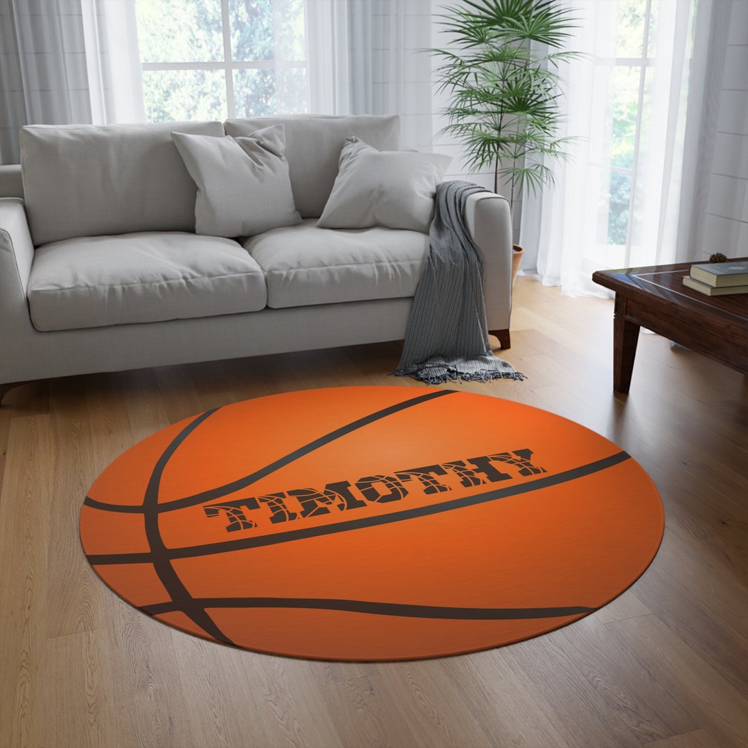 Round Personalized Basketball Rug 60 x 60 Custom Name Gift Bedroom Decor Game Room Man Cave Floor Art Unique Gifts for Him by 3DCandleCreations