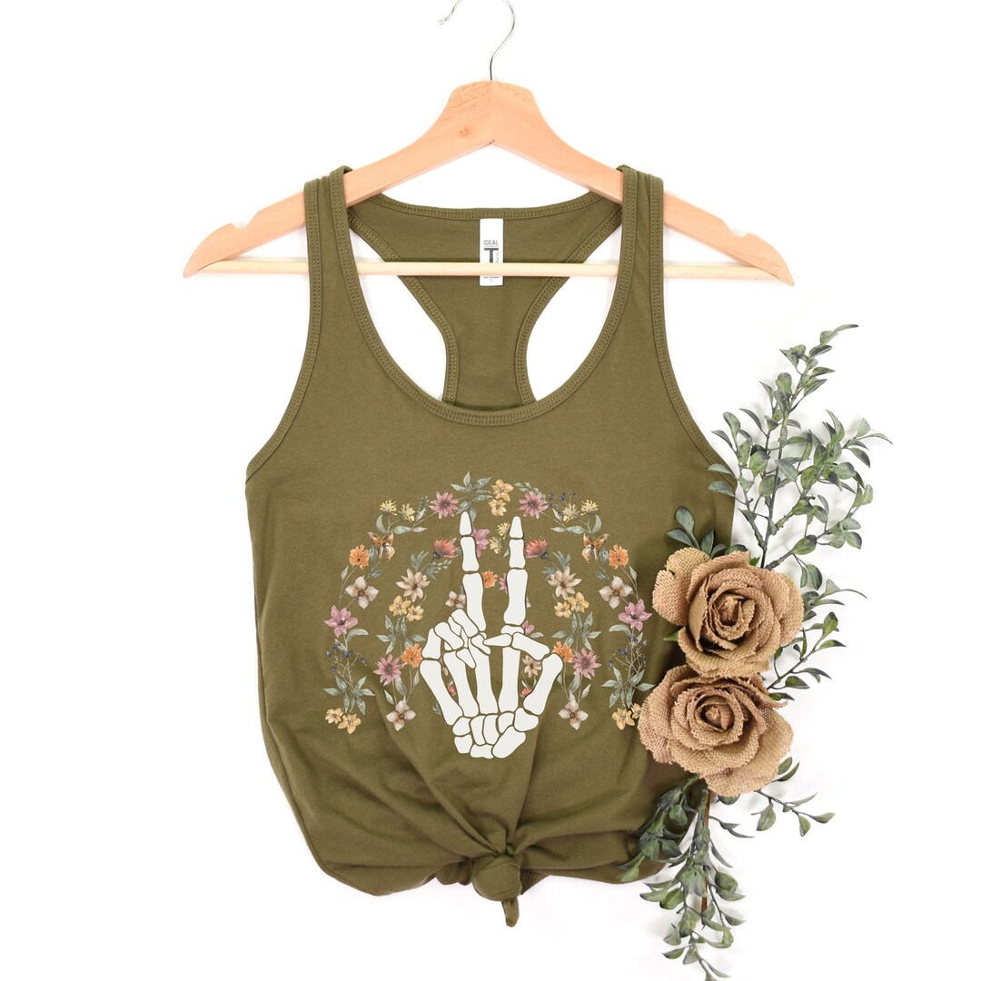 Summer Tank Top Womens Wildflower Skeleton Hand Retro Botanical Trendy Vintage Tanks Aesthetic Graphic Nature Tanks Rocker Fingers Bones by 3DCandleCreations