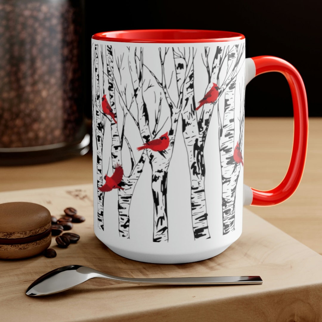 Cardinals on Birch Tree Mug 15 oz Cardinal Lover Gift Nature Birder Mug Bird Watcher Lover Gift Coffee Lodge for Mom Mothers Day for Her