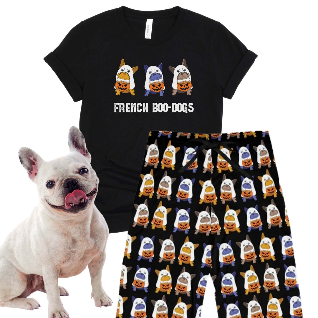 🐶👻 Dress in spooky style with our Halloween French Bulldog pajama bottoms and T-shirt! 🎃🌙