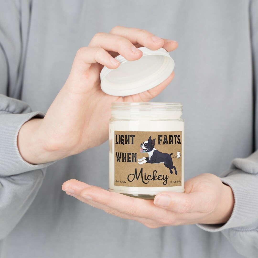 Boston Terrier Farts Candle Personalized Gift Light When Name Farts Funny Gift for Dog Lover Dog Deodorant Odor Eliminator Boston Terrier