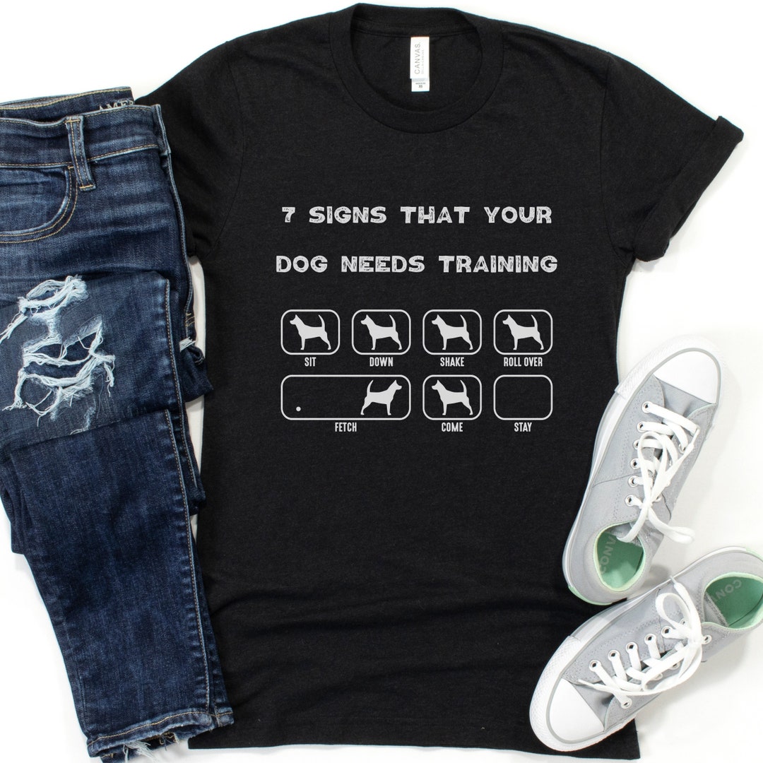 In addition to the jokes, this shirt also features "7 Signs Your Dog Needs Training" on the back, making it a great conversation starter for dog trainers and enthusiasts alike.