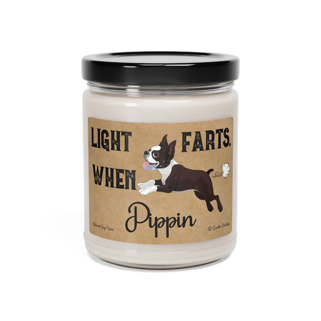 Boston Terrier Farts Candle Personalized Gift Light When Name Farts Funny Gift for Dog Lover Dog Deodorant Odor Eliminator Boston Terrier