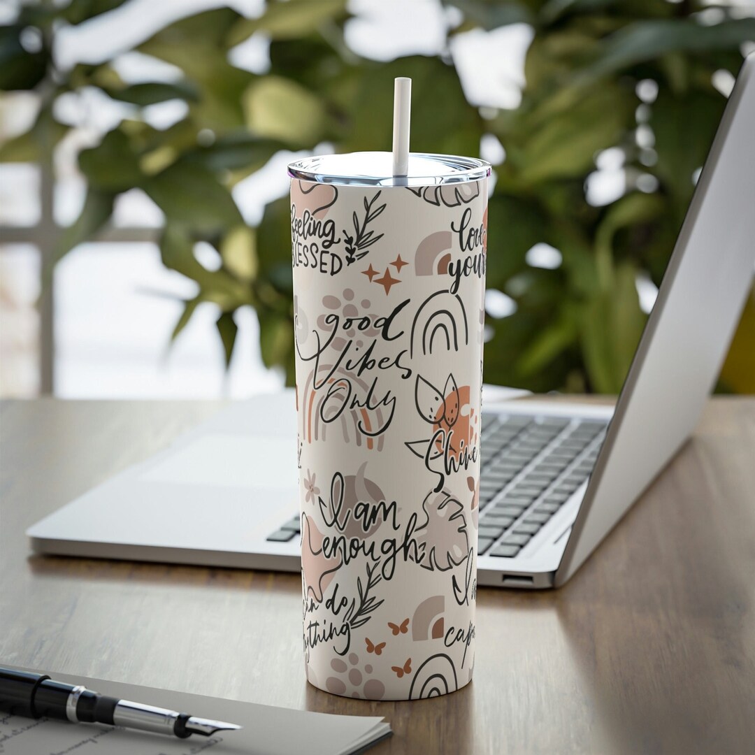 Boho Affirmation Tumbler Gift For Mother's Day Mom Travel Cup Skinny Tumbler with Straw 20 oz Summer Gift for Her Positivity Inspirational