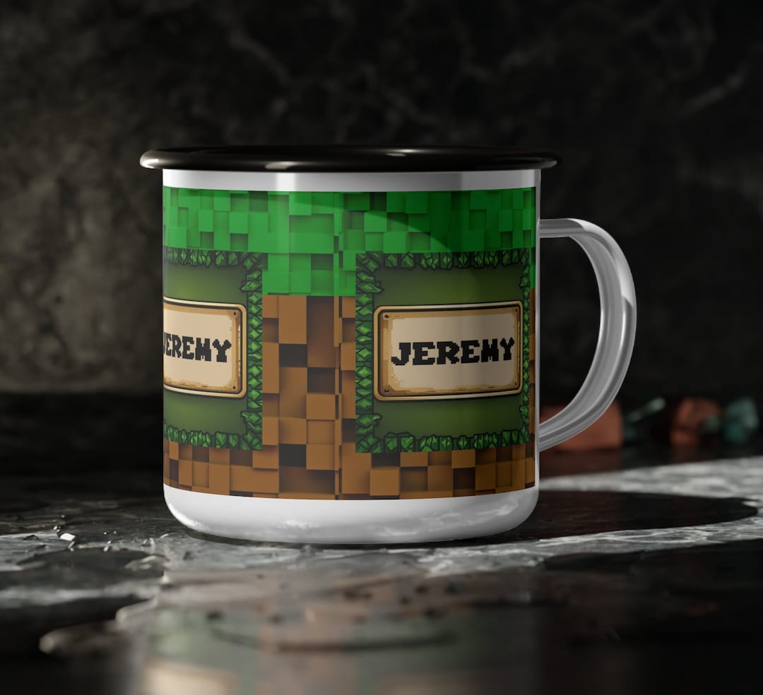 Custom Video Game Enamel Mug Personalized Name Gift for Boys Blocks Mining Boys Birthday Gift Christmas Gaming Gamer Cup Gifts for Him by 3DCandleCreations