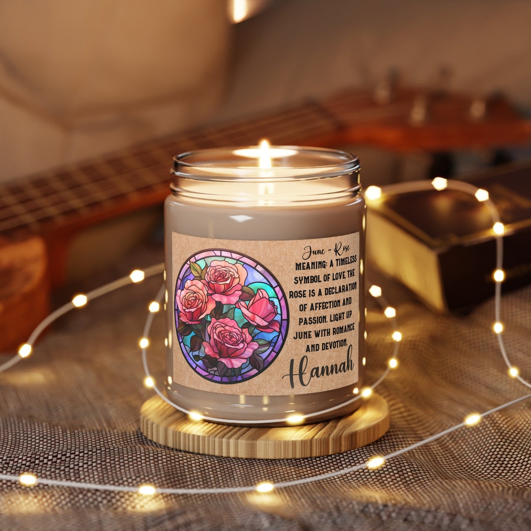 Personalized Birth Month Candle Birth Flower Stain Glass Art Custom Name Gift Floral Birth Flower Description Scented Eco Friendly Gifts