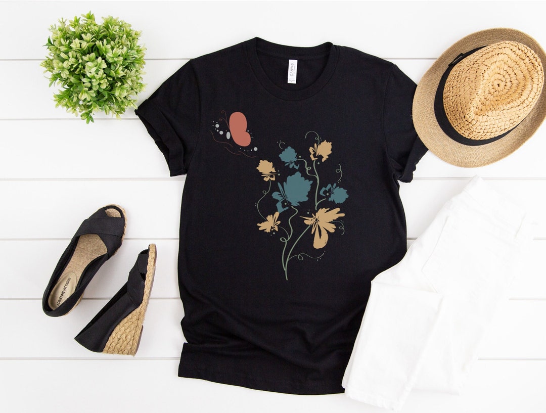 Abstract Wildflower Tshirt Flower Shirt Wild Flowers Shirt Floral Tshirt Gift for Women Womens Butterfly Shirts Friend Gift Nature Lover
