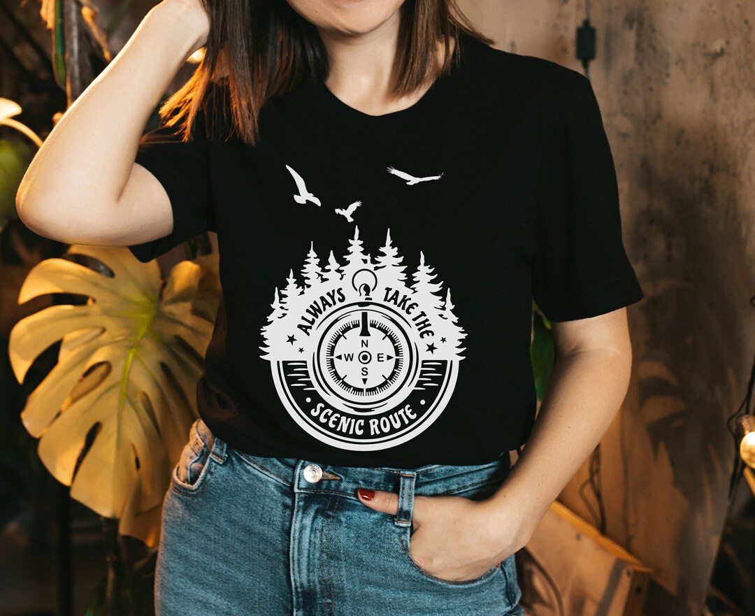 π️ Stylish Design: This premium-quality shirt boasts the bold declaration "Always Take the Scenic Route," perfectly encapsulating the essence of adventure.