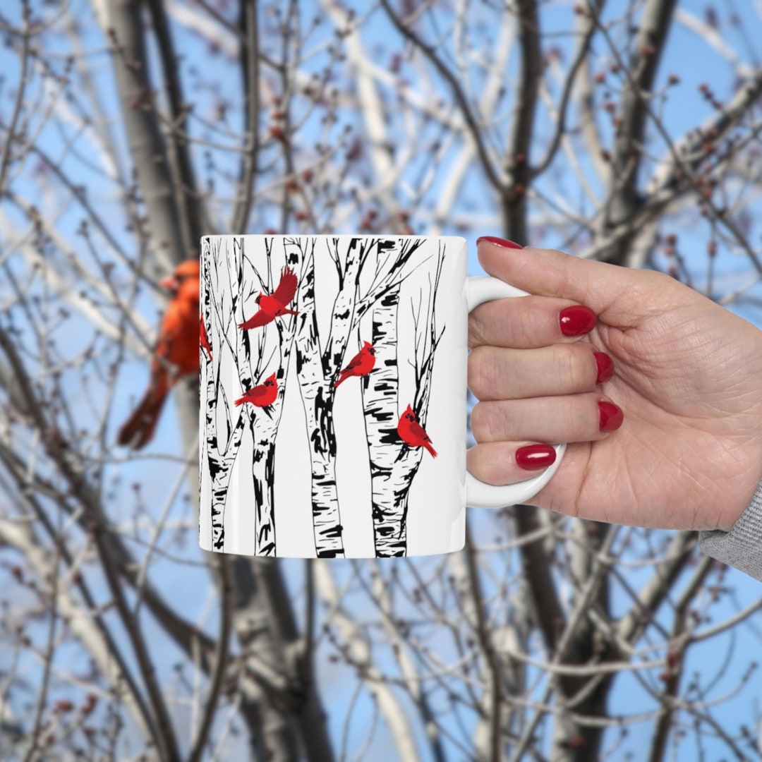Cardinal Birch Tree Coffee Mug Home Decor Bird Lover Gift Mugs Cup Red Birds Unique Gifts Christmas Cardinals Decorative Gifts Hostess Gift by 3DCandleCreations