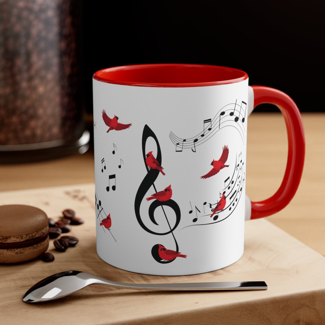 Cardinals Music Notes Mug Cardinal Lover Gift Artistic Mug Bird Watcher Lover Gift Coffee Mug Lodge Mug for Mom Mothers Day for Her Friend by 3DCandleCreations