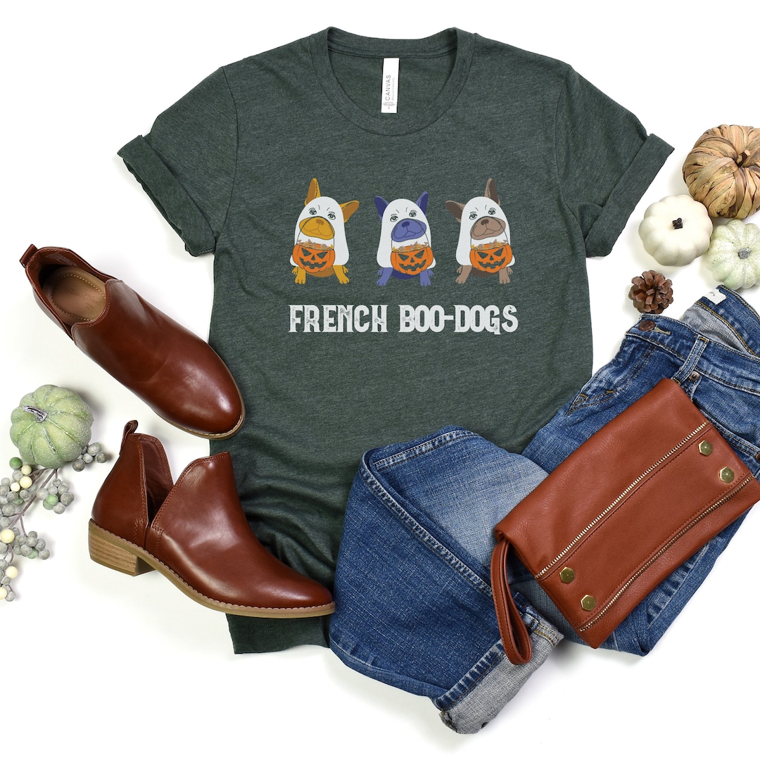 Frenchie Shirt French Boo-Dogs Halloween Crewneck Tee Dog Sweatshirt Frenchie Mom Fall Shirts Bulldog Fall Dog Tee Funny Costume Dogs