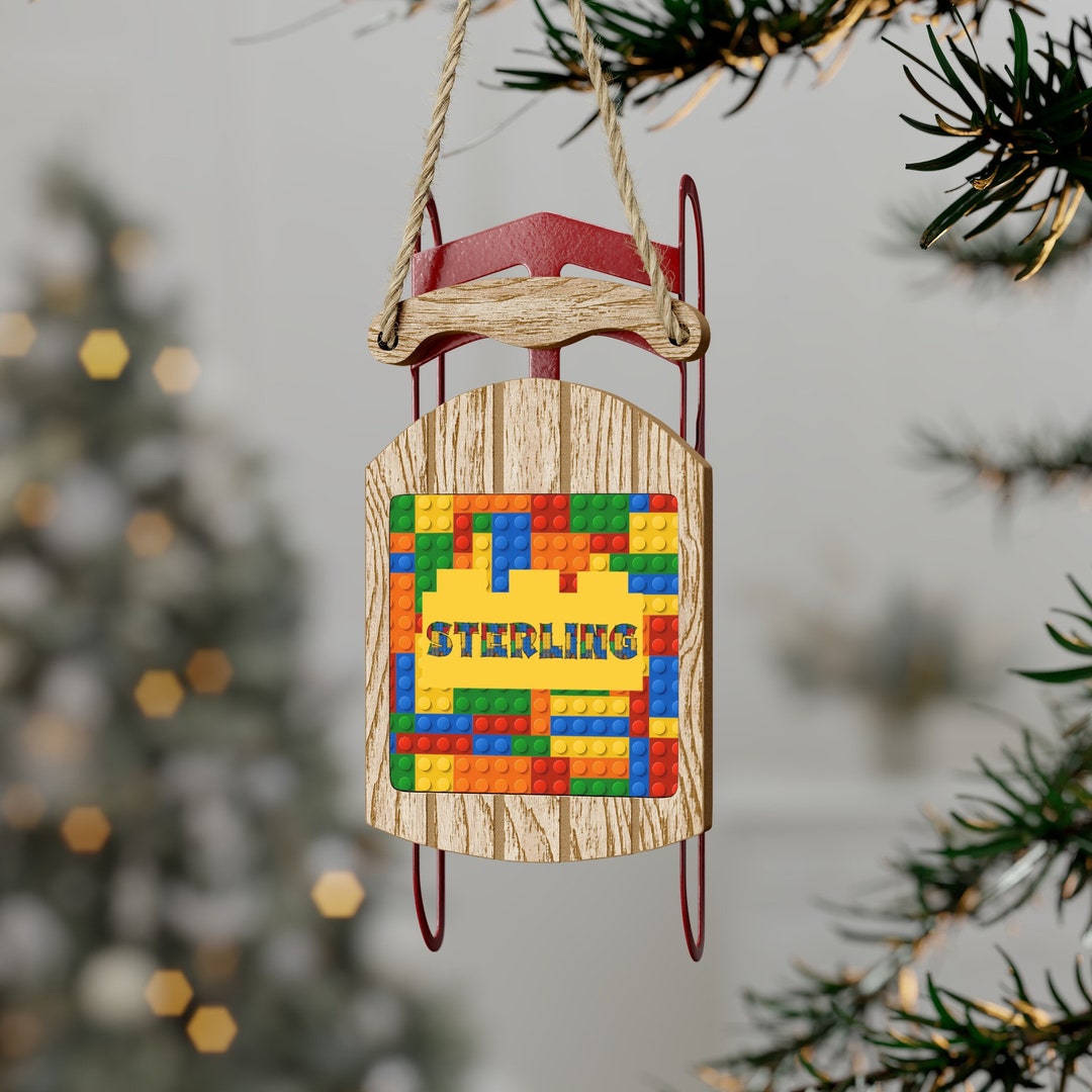 Personalized Building Block Sled Ornaments Childs Ornament Custom Name Building Block Christmas Gifts Christmas Tree Decor Home Decorations