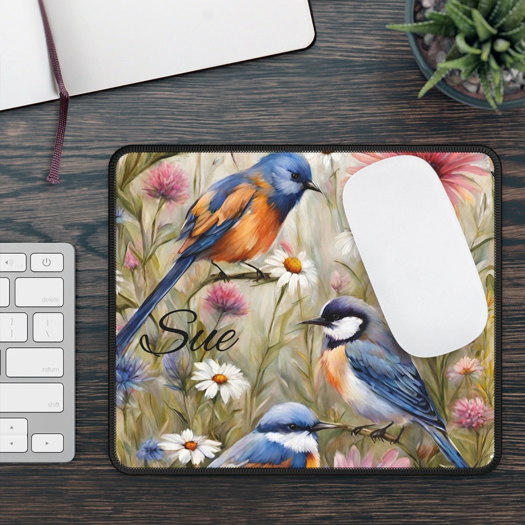 Personalized Mouse Pad Bird Lover Gift Wildflowers & Birds Custom Name Gift Computer Mouse Pads Gift for Bird Lover Artwork Bird Art by 3DCandleCreations