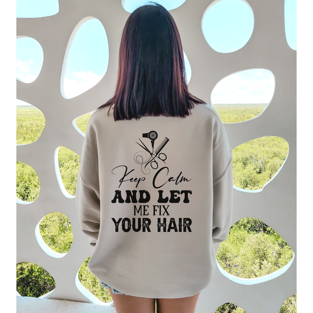 Elevate your style with our Custom Name Hair Stylist Sweatshirts and Hoodies! 🌟 Whether you're a cosmetologist, hairstylist, or just love rocking chic apparel, this collection is designed for you. Personalize your look with your name on the front, a playful "Keep Calm and Let Me Cut Your Hair" message on the back, or opt for both for a unique touch that sets you apart.