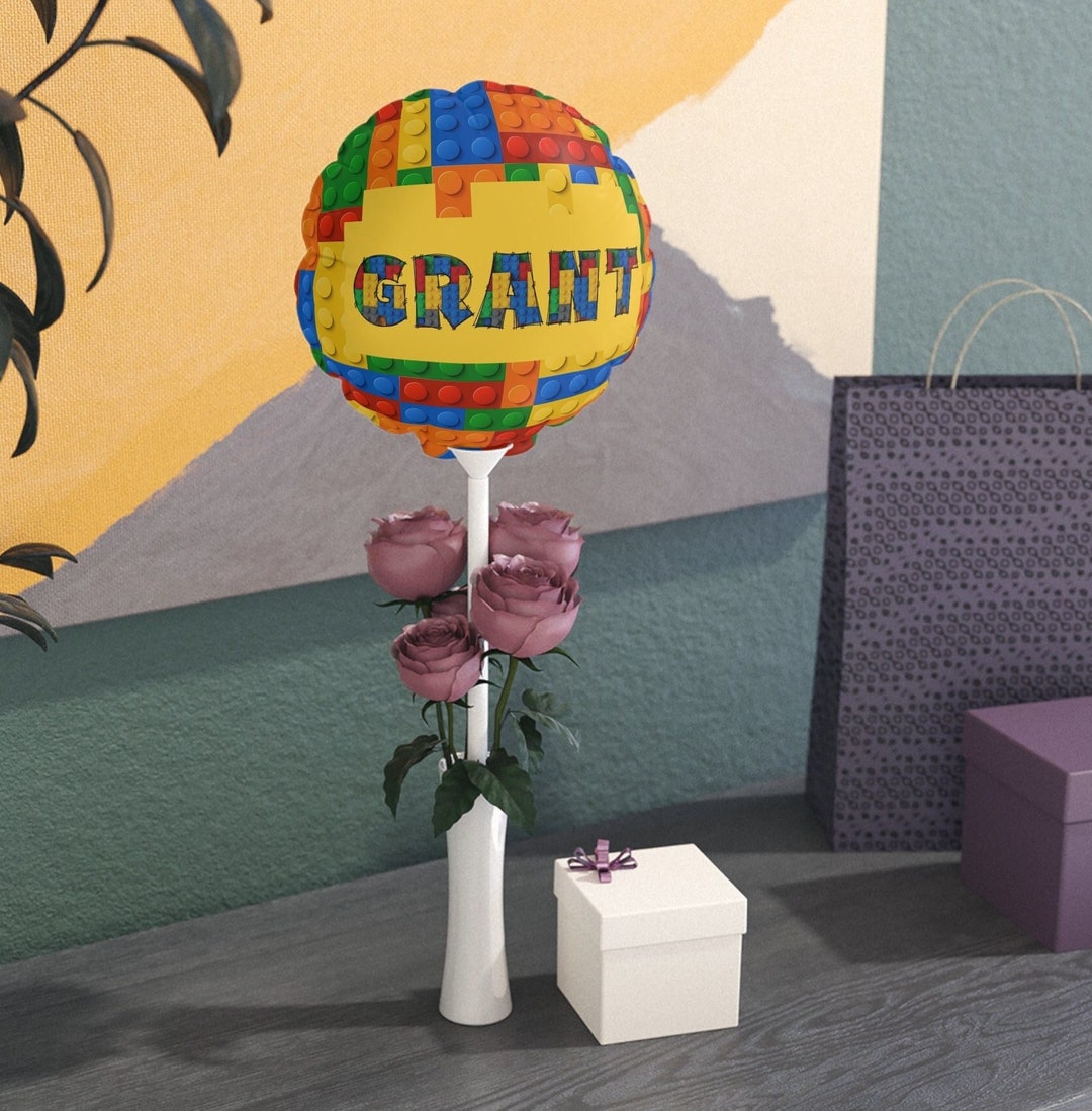 Custom Name Building Block Balloons Boys Girls Birthday Celebration Personalized Name Gift Round Heart shaped Kids Blocks Builder Table Top by 3DCandleCreations