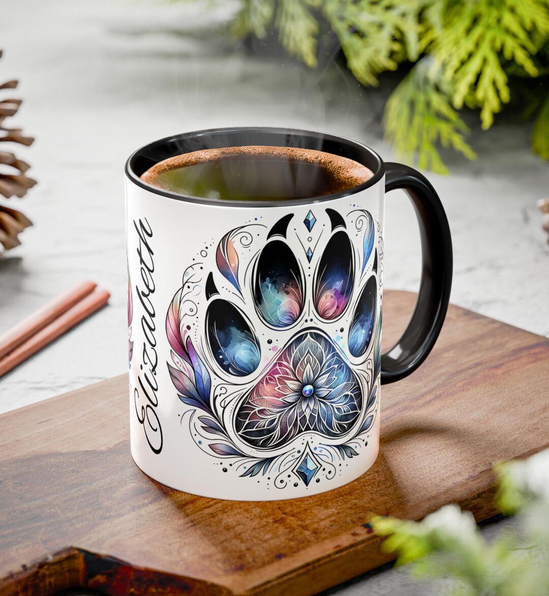 **Colorful Custom Pet Paw Print Mug, Personalized Coffee Cup, Unique Gifts for Animal Lovers, Birthday Present, Home Decor, Cat Dog Mug**