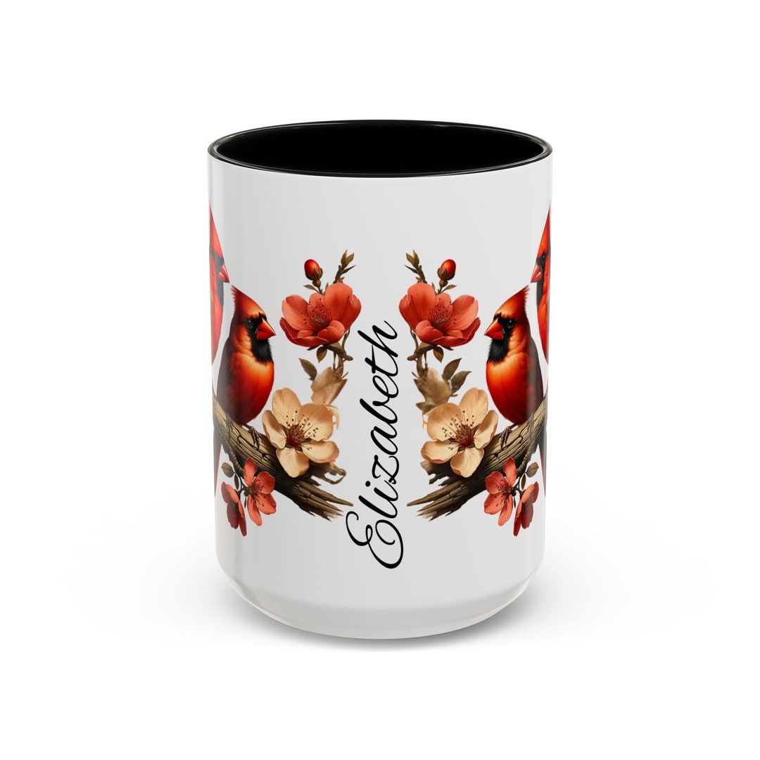 Personalized Cardinal Coffee Mug Cardinals Design Perfect Gift for Bird Lovers Custom Name Floral Mug Unique Home Decor Gift for Her Nature by 3DCandleCreations