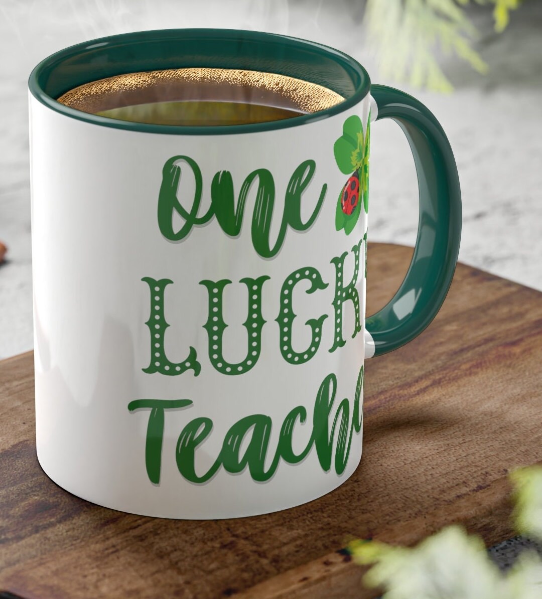 Celebrate St. Patrick's Day in style with this "One Lucky Teacher" ceramic mug. Show your appreciation for your students and the joy of teaching with every sip of your favorite beverage. π☕