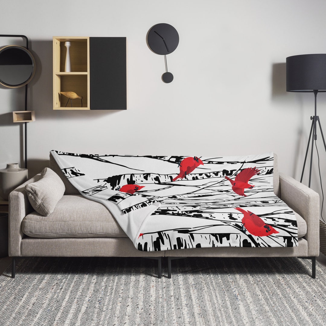 Cardinal Throw Blanket Couch Throw Decorative Bedroom Home Decor Gift for Nature Lover Cardinals on Birch Trees Housewarming Cottagecore