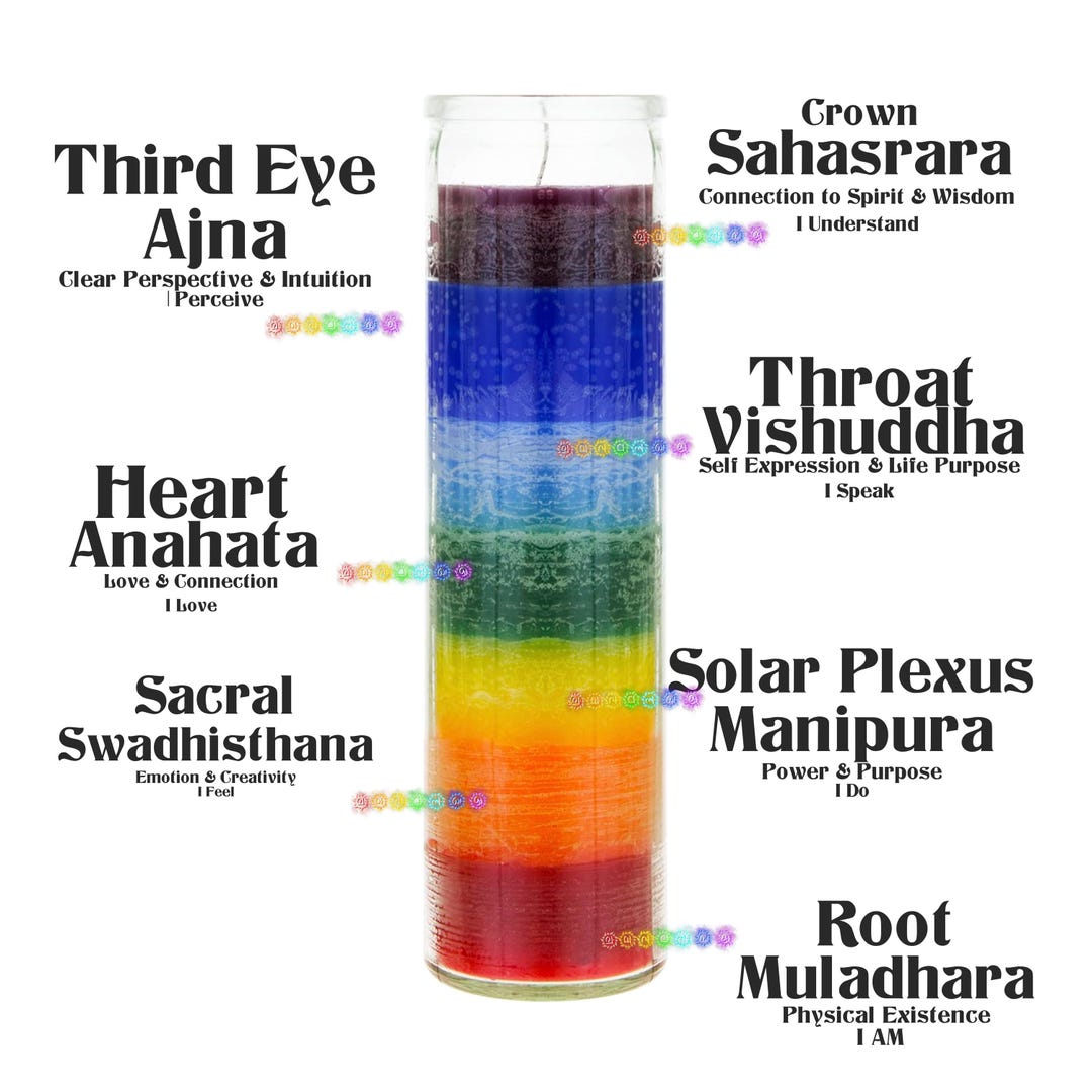 Rainbow Chakra Candle 7 Layer Candle Meditation Spiritual Wellness 80-Hour Hand-Poured Non-Toxic Fragrance-Free Gift for Home or Meditation by 3DCandleCreations