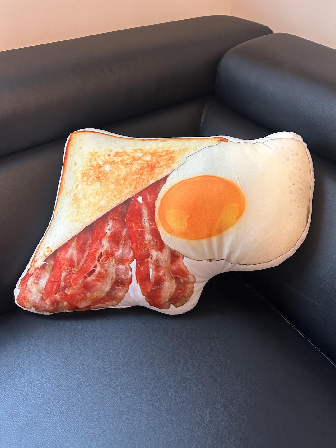 Egg, Toast & Bacon Pillow – Fun Breakfast-Themed Decorative Pillow for Kitchen, Home, and Kids' Rooms!