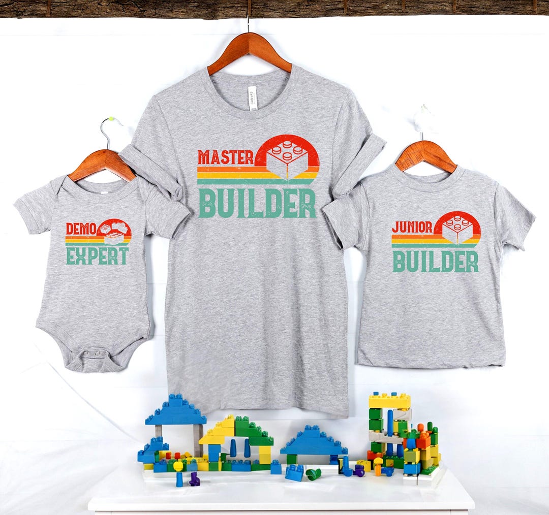 Block Building Shirts Family Matching Father Son Brothers Gift Boy Demo Expert Shirt Brick Boys Blocks Birthday Shirt Retro Vintage Builder by 3DCandleCreations