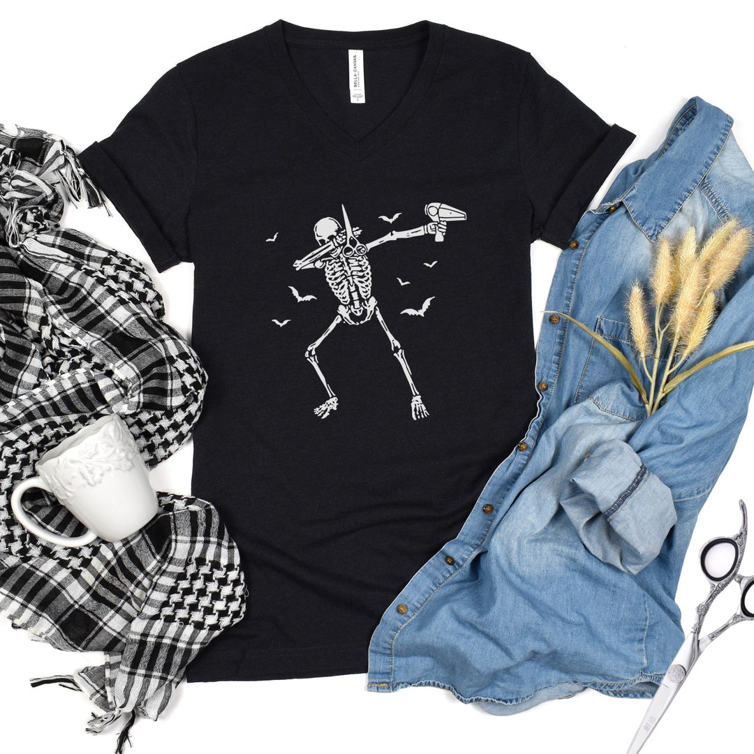 Hair Stylist Halloween Skeleton Vneck Shirt Funny Hairstylist Cute Shirts for Hair Stylist Barber Hair Dresser Womens Clothing Spooky Cute T