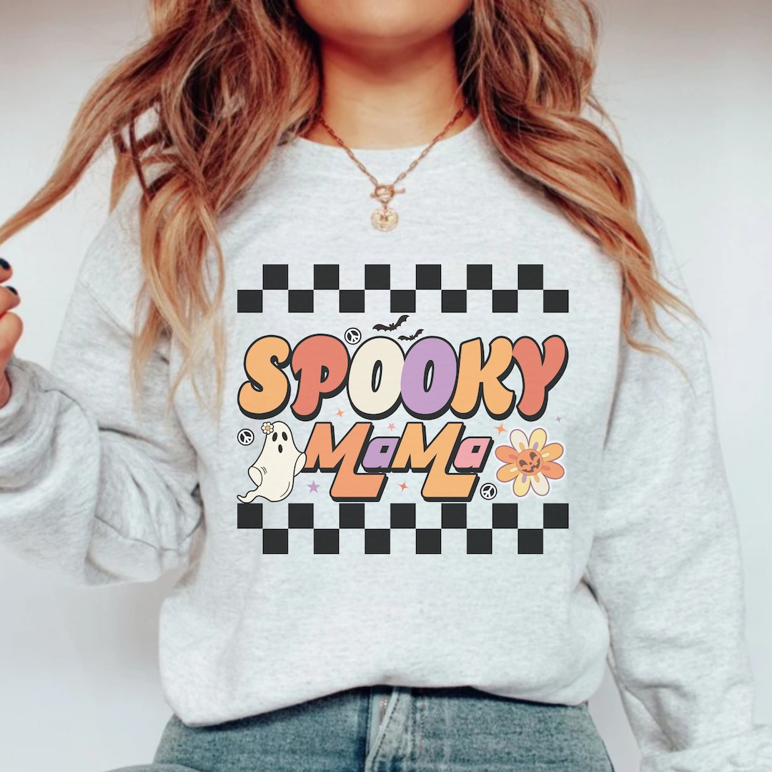 Celebrate motherhood and Halloween in style with our 'Spooky Mama' sweatshirt!"