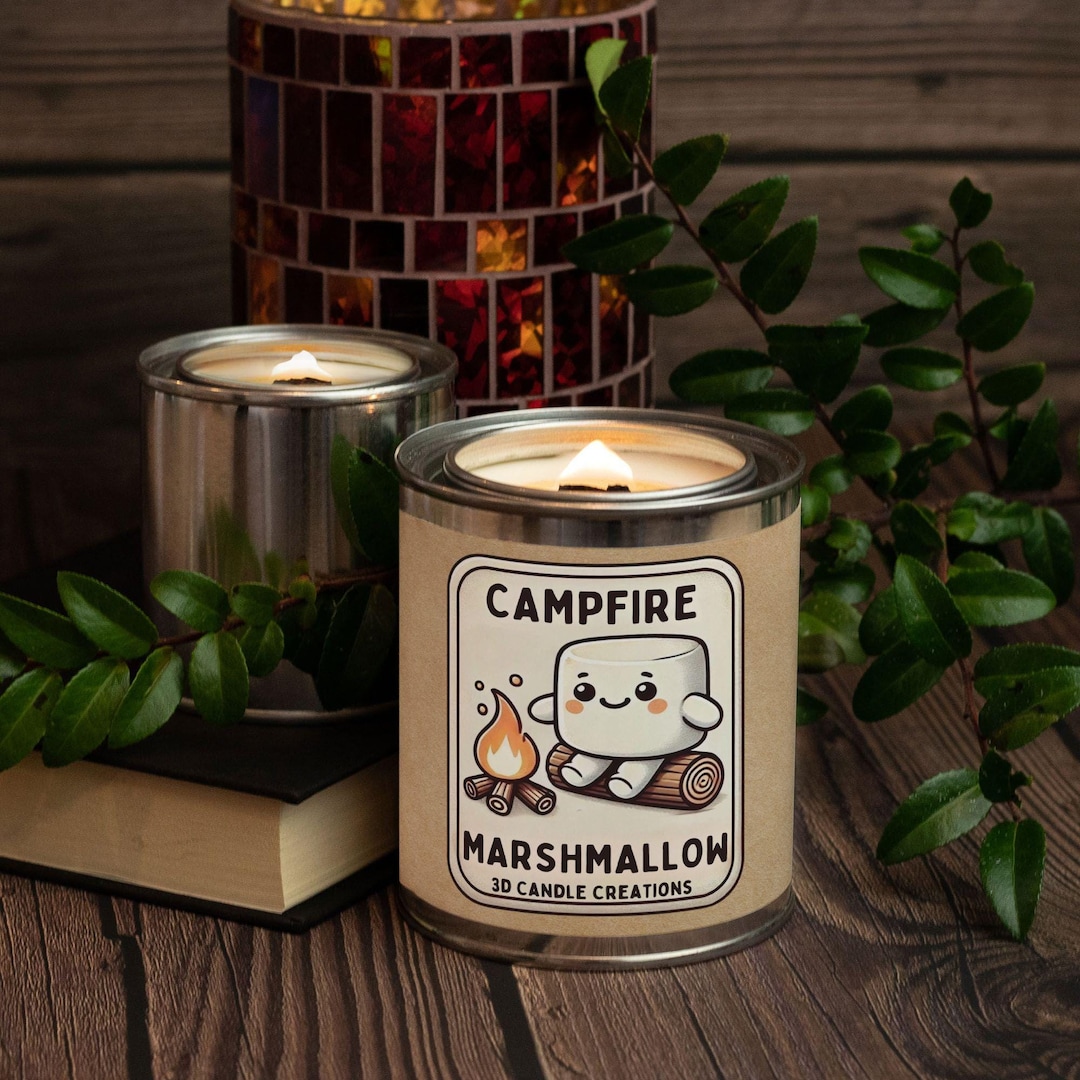 Limited Edition Campfire Marshmallow Candle Large 16 oz Hand-Poured Paint Can Cozy Bonfire Scent Vegan Coconut Soy Wood Wick Home Fragrance by 3DCandleCreations